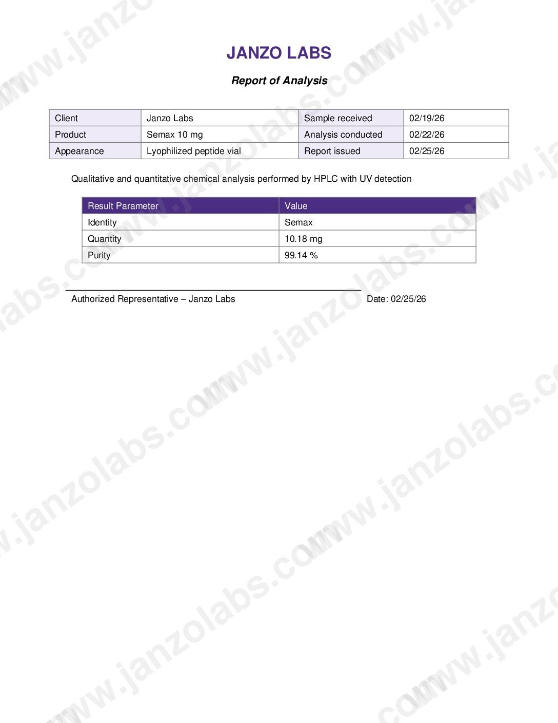 | Physical Appearance | Fine White Lyophilized Powder |